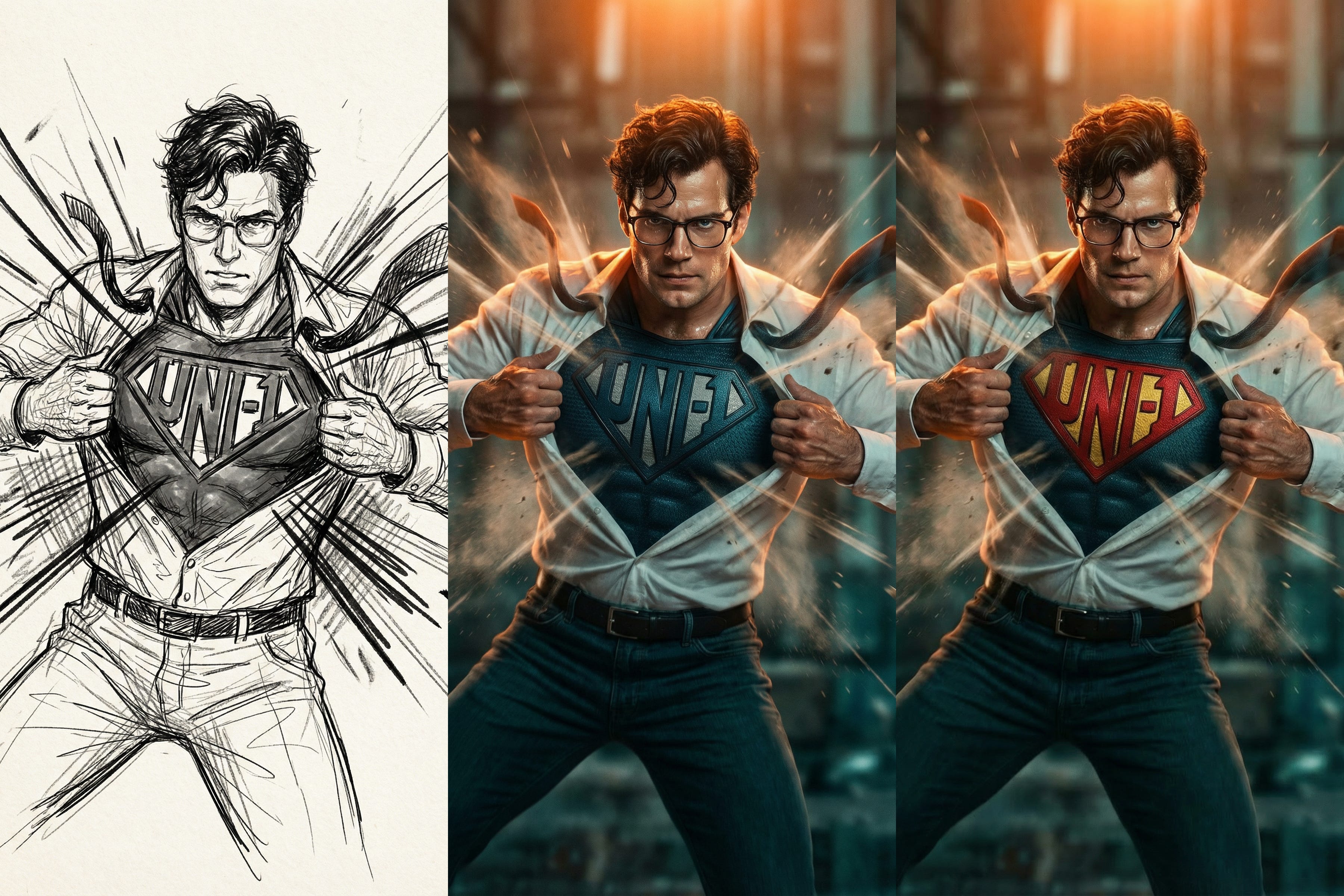 It’s similar to Google’s Nano Banana in the way it uses reasoning, making it easy to prompt the exact outputs you want while staying consistent during editing. In my test ⬇️ I asked first for a sketch, then to render the sketch cinematically, then to change the icon on the superhero costume to be clearer; it did pretty much exactly what I asked for at every step.